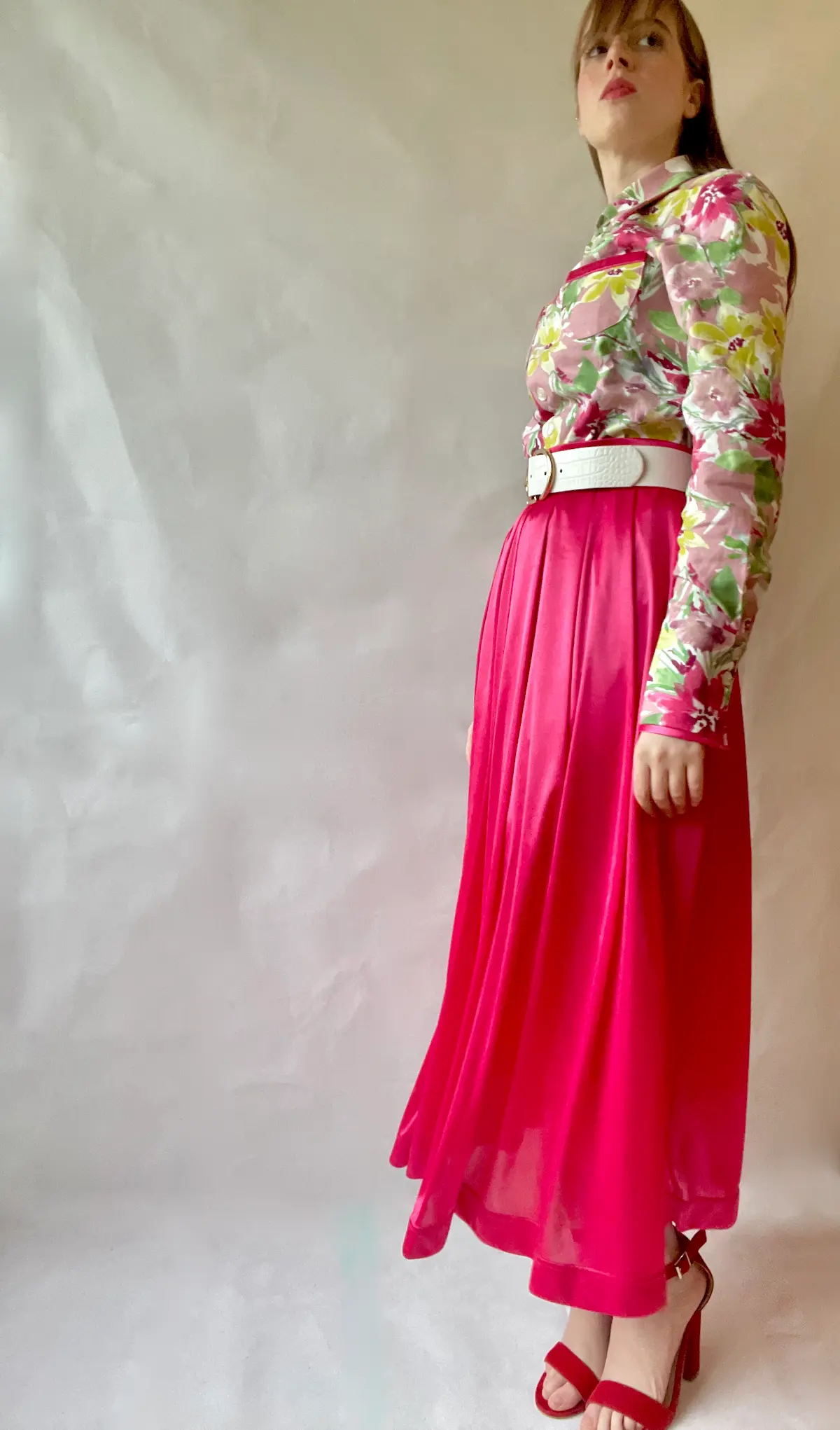 A tailored skirt in soft satin, inspired by traditional Sardinian dress skirts.
